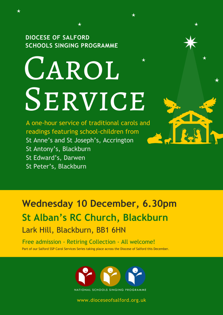 The next event in the series will take place on Wednesday 10th December at St Alban’s Church at 6:30pm. There will be a one-hour service of traditional carols and readings, performed by children and families from the following schools: