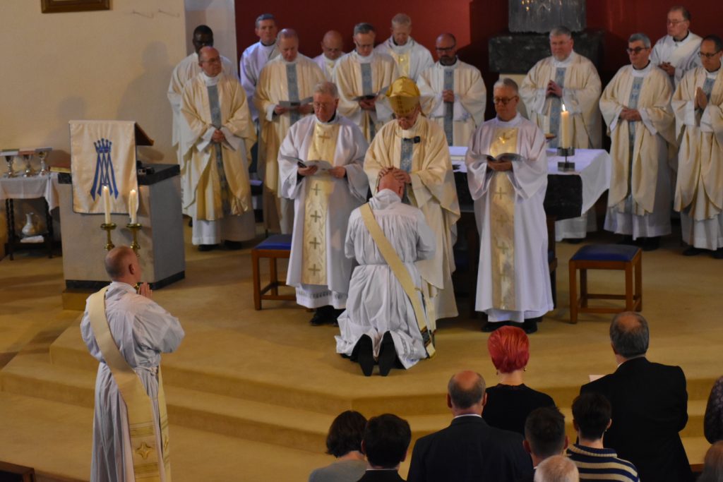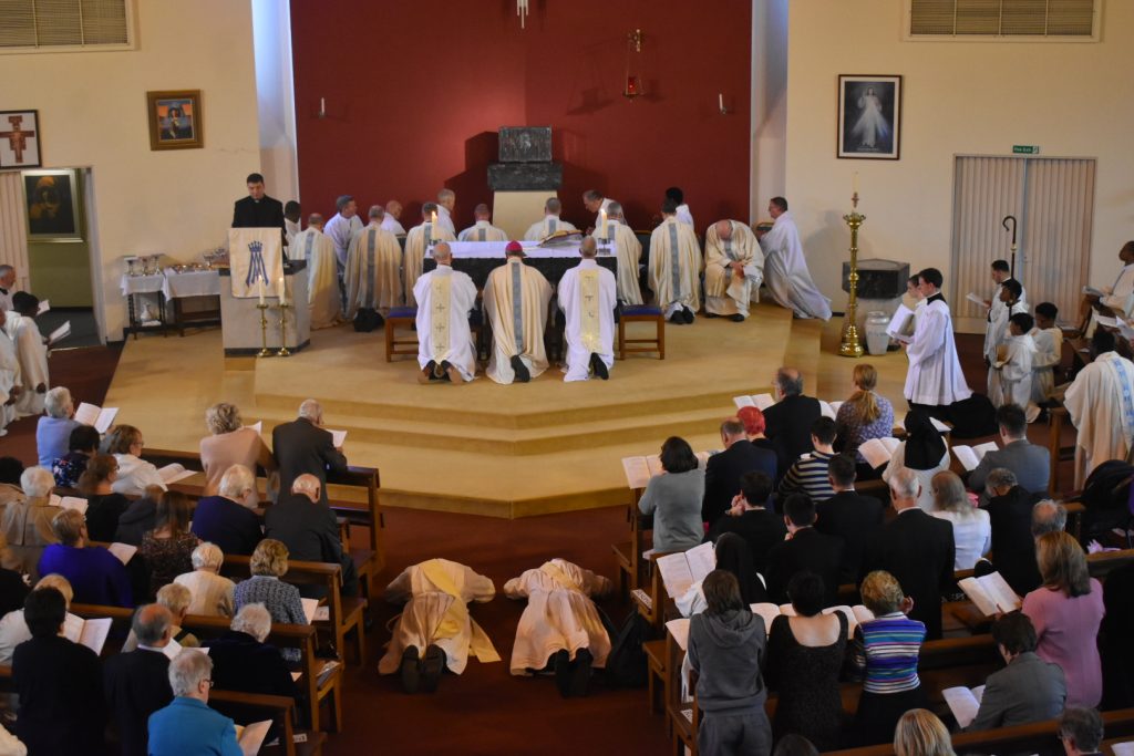 This striking gesture was accompanied by a beautiful moment of prayer, as clergy and congregation raised their voices to sing the Litany of the Saints, praying for the intercession of all holy men and women of God as our new priests begin their ministry.