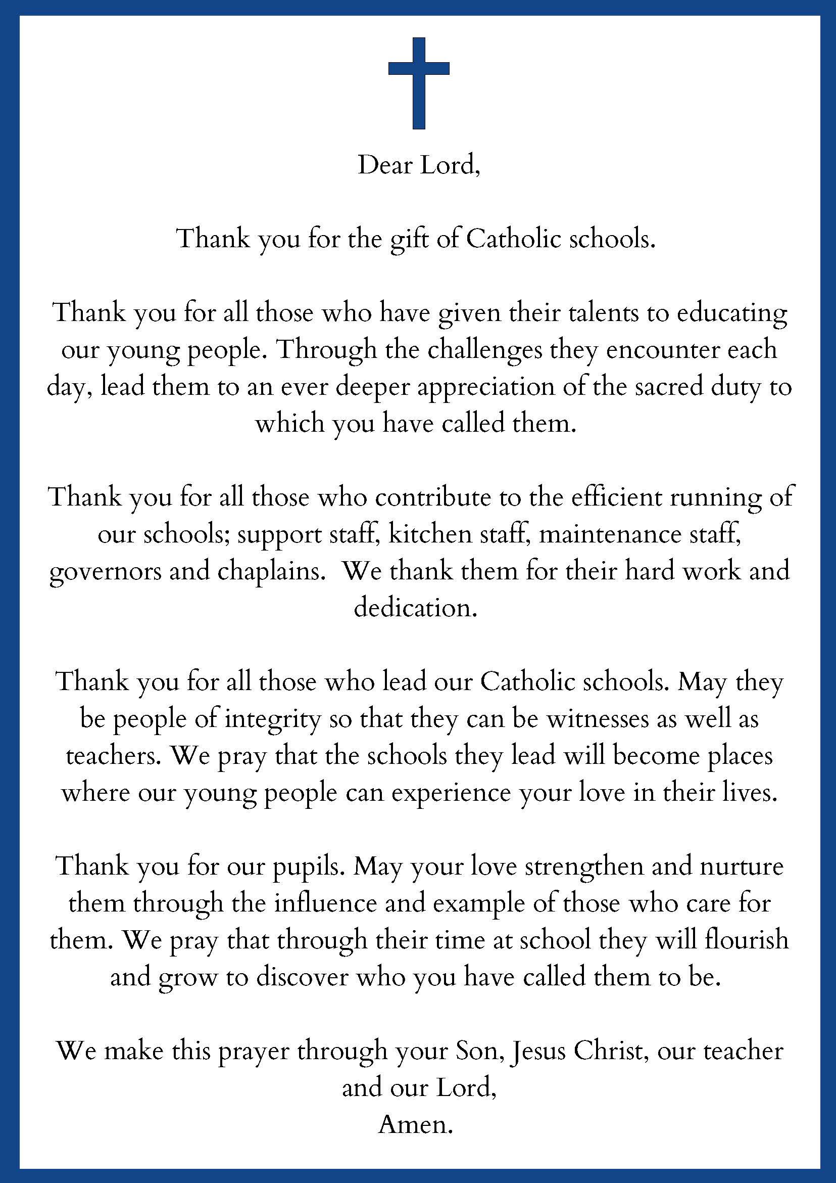 It is a national day of celebration for all those who work and learn in the varied world of education. We remember all those whose vocation it is to teach. We remember those who, in the name of our bishop, govern and guide. And we remember all our parents who, as first educators of their children, play an important role too.