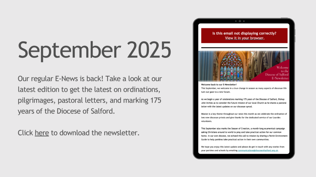 If you would like any more information about the E- Newsletter or would like to unsubscribe please email communications@dioceseofsalford.org.uk
