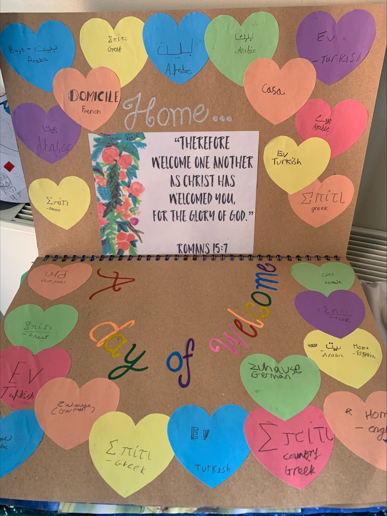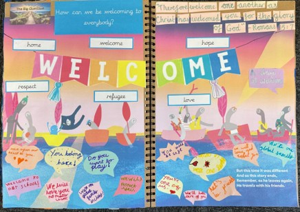 “Our children are putting Gospel values into action as they welcome new arrivals from all over the world and show them how we are “one family in Christ” here at St John the Baptist RC Primary School.